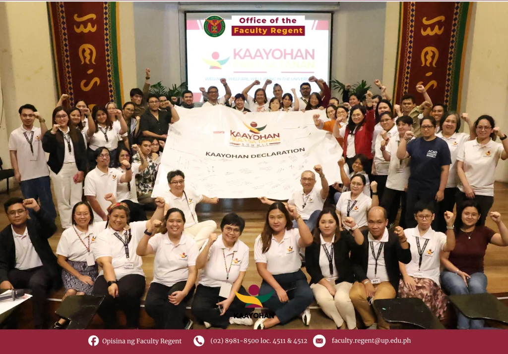 In order for the University of the Philippines (UP) to serve the people well, it has to ensure the wellness, welfare, and wellbeing of its own community. This, in essence, was one of the key messages that came out of the Kaayohan Summit on December 1-2, 2025 at the Melchor Hall Theater, College of Engineering, UP Diliman, Quezon City. Guided by the theme “Kaayohan para sa Tanan: Wellness, Welfare, and Well-being in the University,” the two-day event sought not only to articulate the challenges to well-being experienced by UP’s workforce but also to propose for policies that enable the community to better deliver its indispensable public service to the country. The summit brought together faculty, REPS, administrative staff, and contractual personnel from across the UP System. At the core of the summit was the Kaayohan framework adopted by the UP Office of the Faculty Regent, which emphasizes that honor, excellence, and service rest fundamentally on the well-being of its people. This framework recognizes that a university’s capacity to teach, conduct research, and deliver public service is inseparable from the conditions of its workers. The Summit identified some of the systemic issues faced by the UP community. These include heavy workloads, unclear or unfair promotion pathways, limited institutional support, mobility and housing issues, and persistent job insecurity undermine the university’s mission. By confronting these issues head-on, the summit aimed to advocate for a policy shift toward a healthier and more humane academic environment. The keynote address delivered by Dr. Paul Michael Hernandez of the UP Manila Healthy University Office highlighted the urgency of institutionalizing well-being. He urged the university community to advocate not only for better funding but also for structural commitments that protect worker welfare. Dr. Hernandez called for allocating five percent of UP’s annual budget to health and wellness — similar to the Gender and Development budget requirement. By linking well-being initiatives to systemic funding mechanisms, he emphasized the need for long-term solutions rather than piecemeal efforts. Challenges to well-being The plenary discussions, meanwhile, highlighted the various challenges that undermine the well-being of university personnel. In the first plenary session on wellness, speakers pointed to mental health concerns, unsafe spaces, physical accessibility issues, and the emotional toll of being overworked and undervalued. Prof. Ervina Espina of the UP Ugnayan ng Pahinungod said that there are some unsafe spaces in UP where a “culture of silence” exists. Meanwhile, Prof. Pat Carranza, a mobility advocate and head of the UP College of Music’s Music Education Department, added that the lack of reliable transportation within UP Diliman creates daily hardships, especially for those with mobility concerns. Job insecurity among Job Order/Contract of Service (JO/COS) or contractual workers has been a central concern among the university workforce, said Anna Cruz of the Alliance of Contractual Employees in UP (ACE UP). She emphasized that these employees, who perform essential roles yet lack job stability, must be fully included in the university’s wellness planning. Dr. Shelley Ann Dela Vega added preventive care also needs to be on top of the wellness agenda. She reminded delegates that institutional support for early health interventions can significantly improve long-term outcomes for employees. The role of institutional support in well-being The second plenary discussions during the first day focused on institutional support for welfare. The discussions revealed substantial gaps in career development, compensation, and benefits. Ms. Perlita Raña, national president of the All-UP Academic Employees’ Union (AUPAEU), critiqued the current salary system, asserting that there seems to be a disconnect between employees’ growing expertise and their stagnant pay levels. Staff Regent-elect Rey Espanto, meanwhile, commented that equity remains uneven across constituent universities, urging UP to standardize benefits under the principle of “One UP.” Two UP System officials shared updates on the Angelo Jimenez administration’s efforts to address wellness concerns. Assistant Vice President for Administration Prof. Richard Javier announced a UP-TESDA partnership for free capacity building, while Assistant Vice President for Academic Affairs Ian Kendrich Fontanilla discussed the Office of the Vice President for Academic Affairs’ grants and fellowships, among other things. Well-being and academic freedom During the second day, speakers participated in a plenary session focusing on the importance of academic freedom and how threats to academic freedom impact on the wellness, well-being and welfare of members of the UP community. Former Faculty Regent and UP Manila Prof. Carl Marc Ramota discussed efforts from the faculty community at defending academic freedom in UP in a climate of political repression and red-tagging. He noted the formation of the Committee for the Promotion of Academic Freedom and Human Rights in most Constituent Universities in UP as one of the important developments that need to be seen through in the next coming years. Professors Willy Alangui of UP Baguio and Regletto Imbong of UP Cebu discussed how faculty members and other UP community members in their own CUs faced the various challenges and threats to their exercise of academic freedom. Alangui asserted that academic freedom is of utmost importance in order to achieve Kaayohan. Imbong, meanwhile, cited former UP President Francisco Nemenzo, who said that academic freedom is for those who need it the most – the poor and marginalized sectors of Philippine society. Both emphasized the need for both collective action and solidarity with other sectors of Philippine society as crucial in asserting democratic rights. Ruby Anna Bernardo, national chair of the A